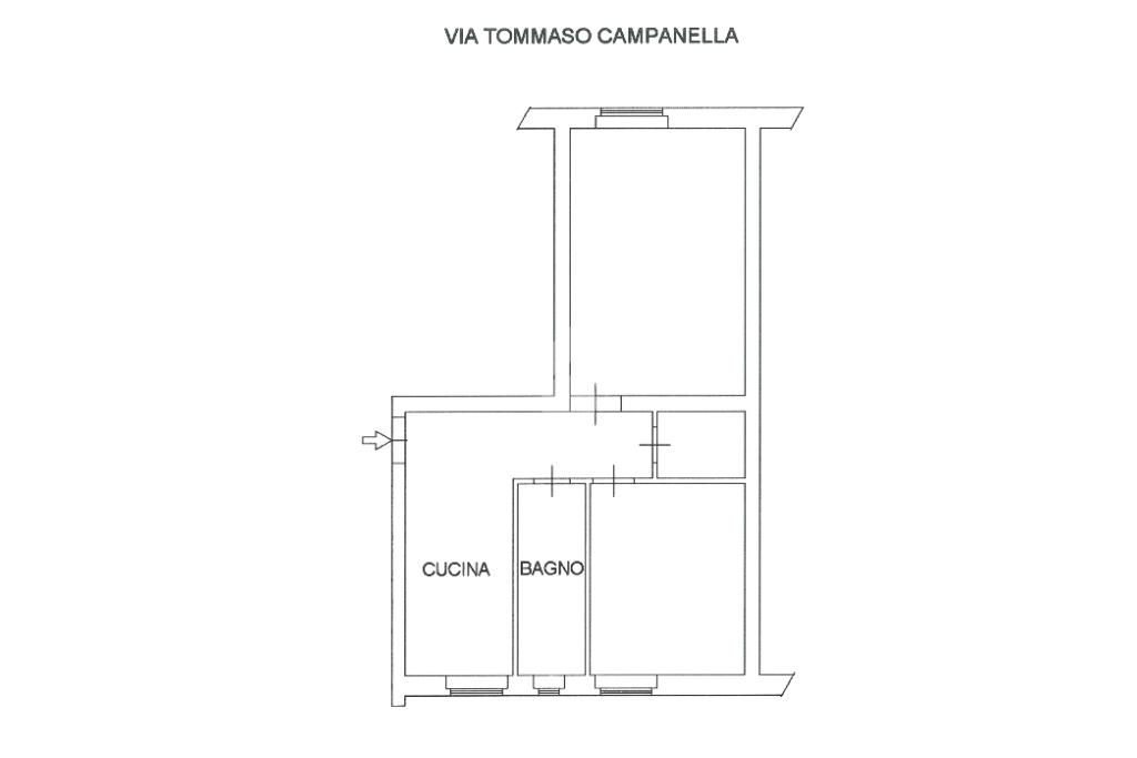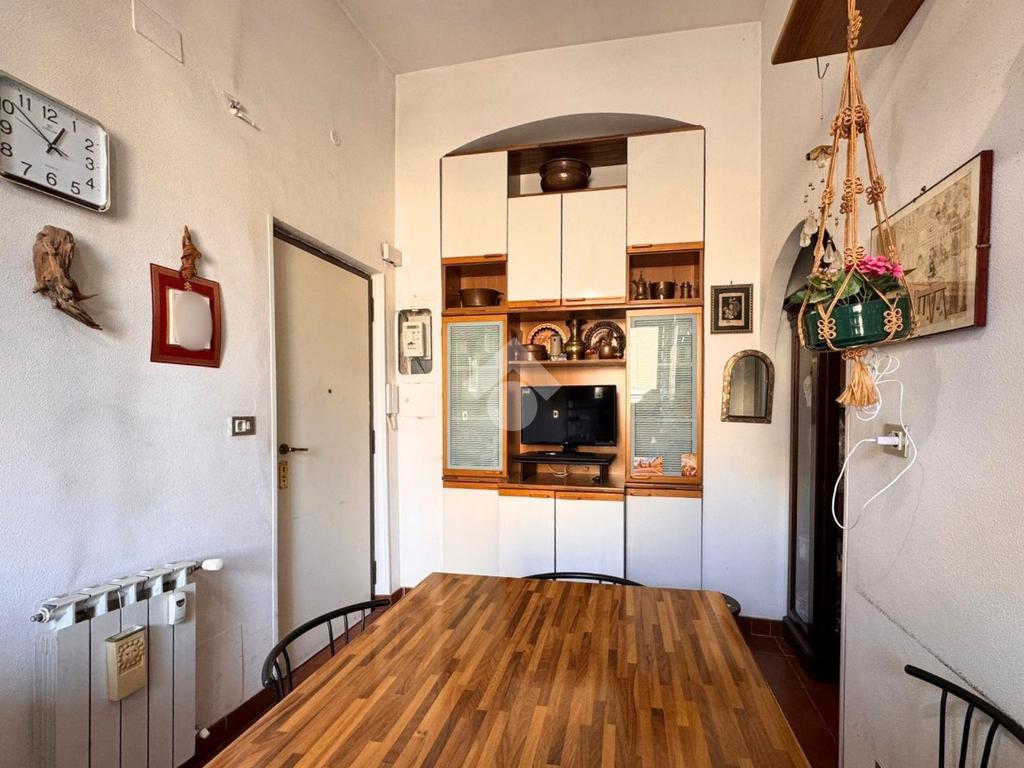 L'immobile, posto al terzo piano oltre il rialzato (quarto in catasto), privo di ascensore, internamente è composto da ingresso con cucina a vista, soggiorno, camera da letto matrimoniale, ripostiglio e bagno.